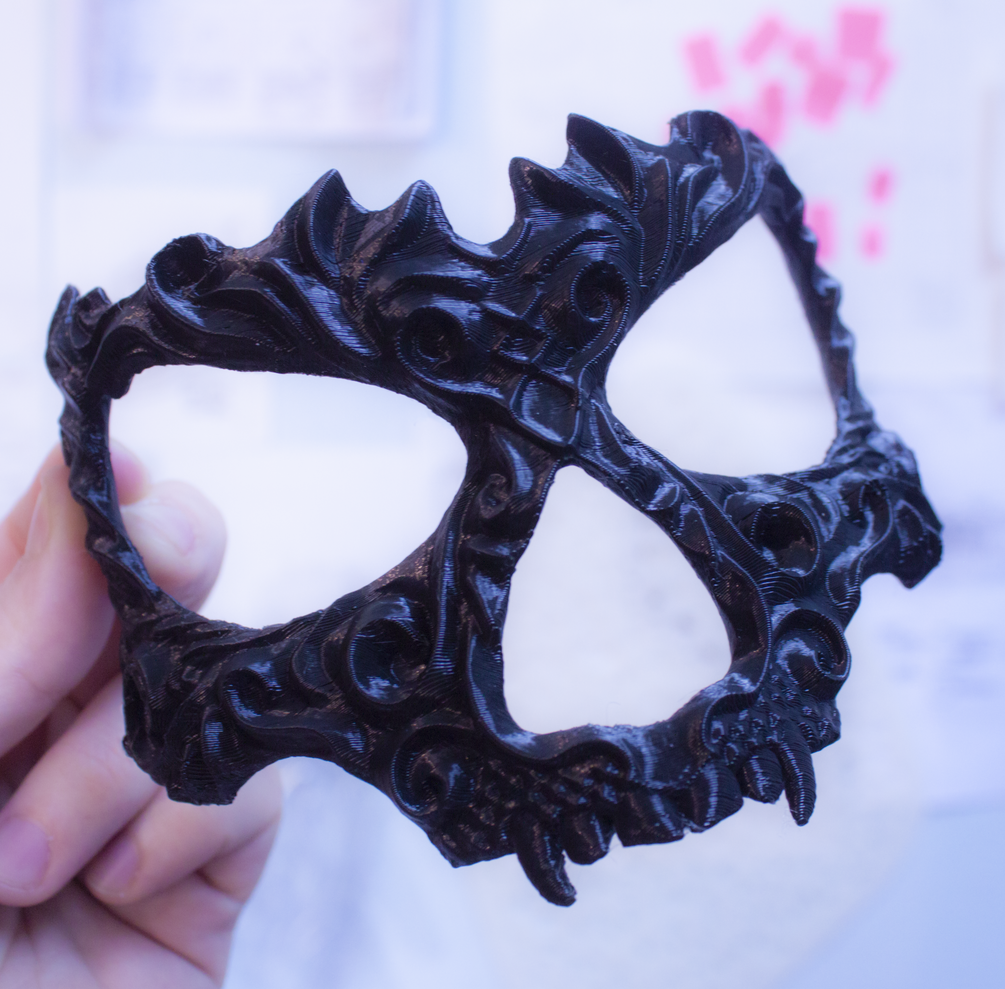 3d printable stylized skull mask designed for female face. Can be widened in 3d print software to ensure proper fit. Recommended print orientation is with mask facing up.